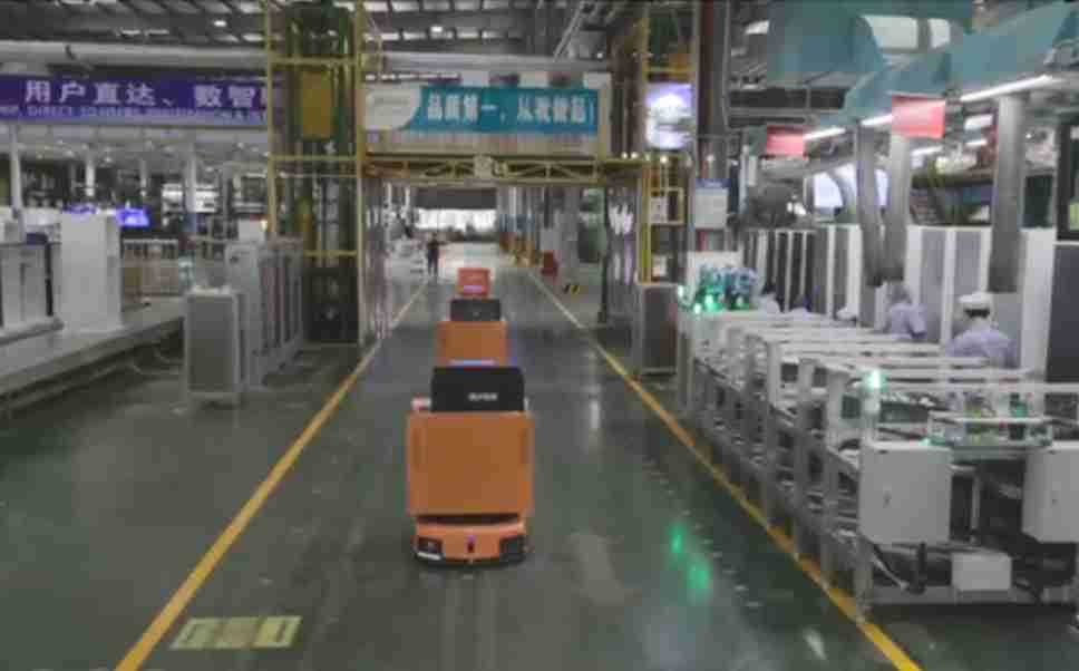 为车载冰箱物流配送打造的智能解决方案,,,,包含产中物流通过潜伏举升AMR搬运至线边,,,产后成品物流智能仓储,,,流程包含产中物流智能齐套入库,,,,线边安灯叫料AMR智能配送至线边,,,成品入库、、出库,,通过无人堆高车机器人,,智能仓储管理替代人工作业管理,,,实现更高存储、、更高效率、、更具柔性化的解决方案。。。